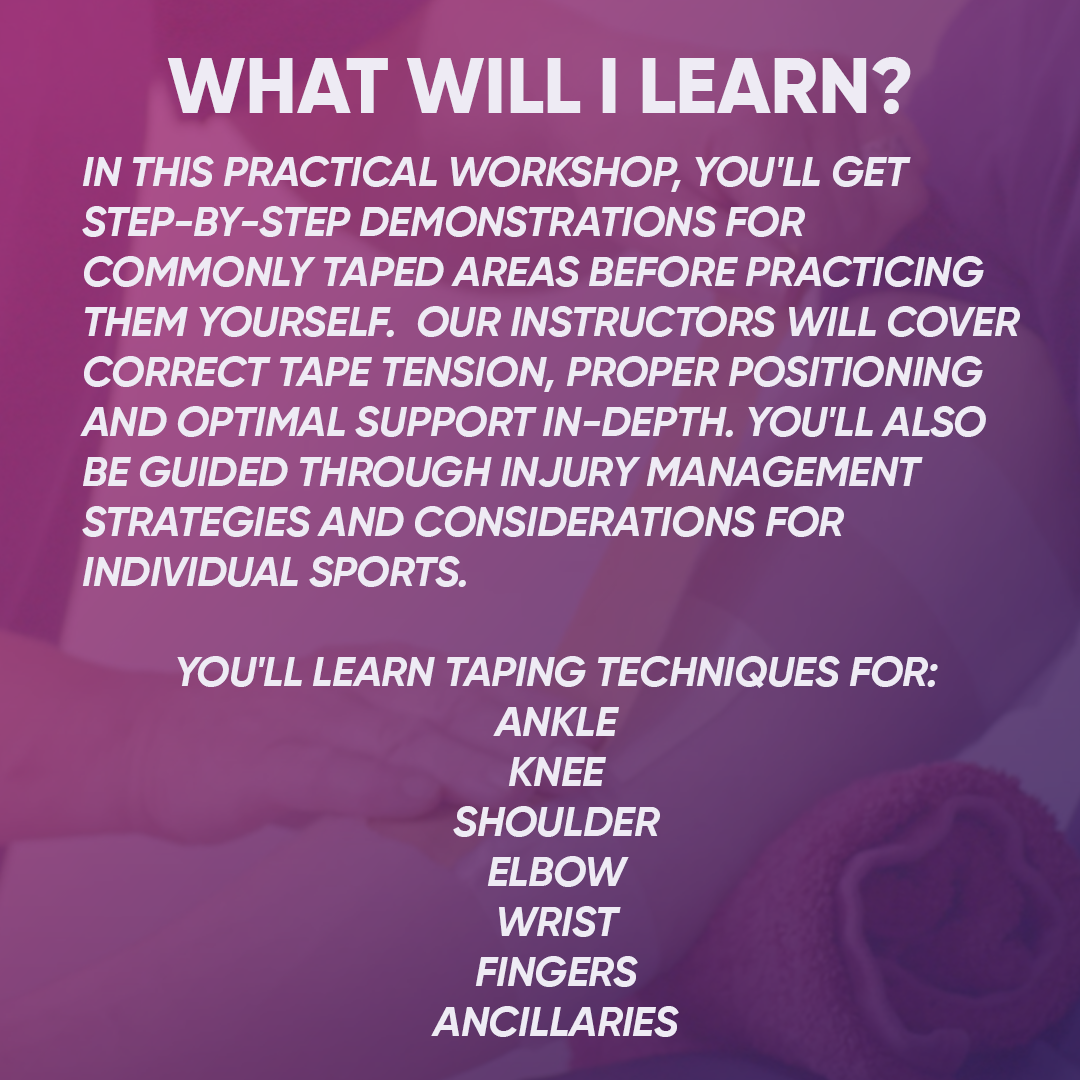 Our instructors will cover correct tape tension, proper positioning and optimal support in depth.